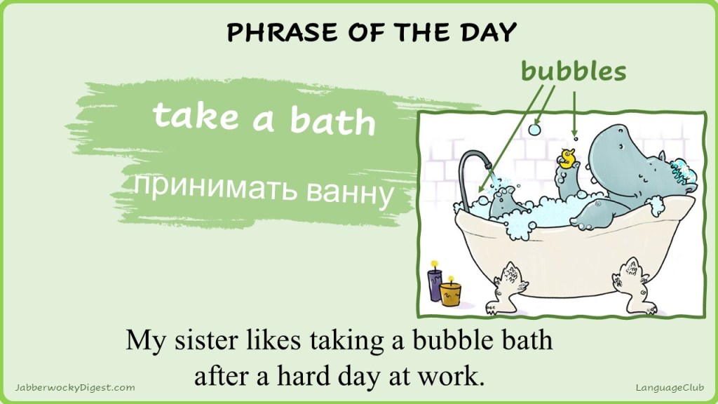 Posted December 24, 2020 by Svitlana word of the day Take a bath Categoriesword of the dayShare this: Click to share on X (Opens in new window) X Click to share on Facebook (Opens in new window) Facebook Like Loading... Related Svitlana View All language fan, translator, teacher, writer, creator
